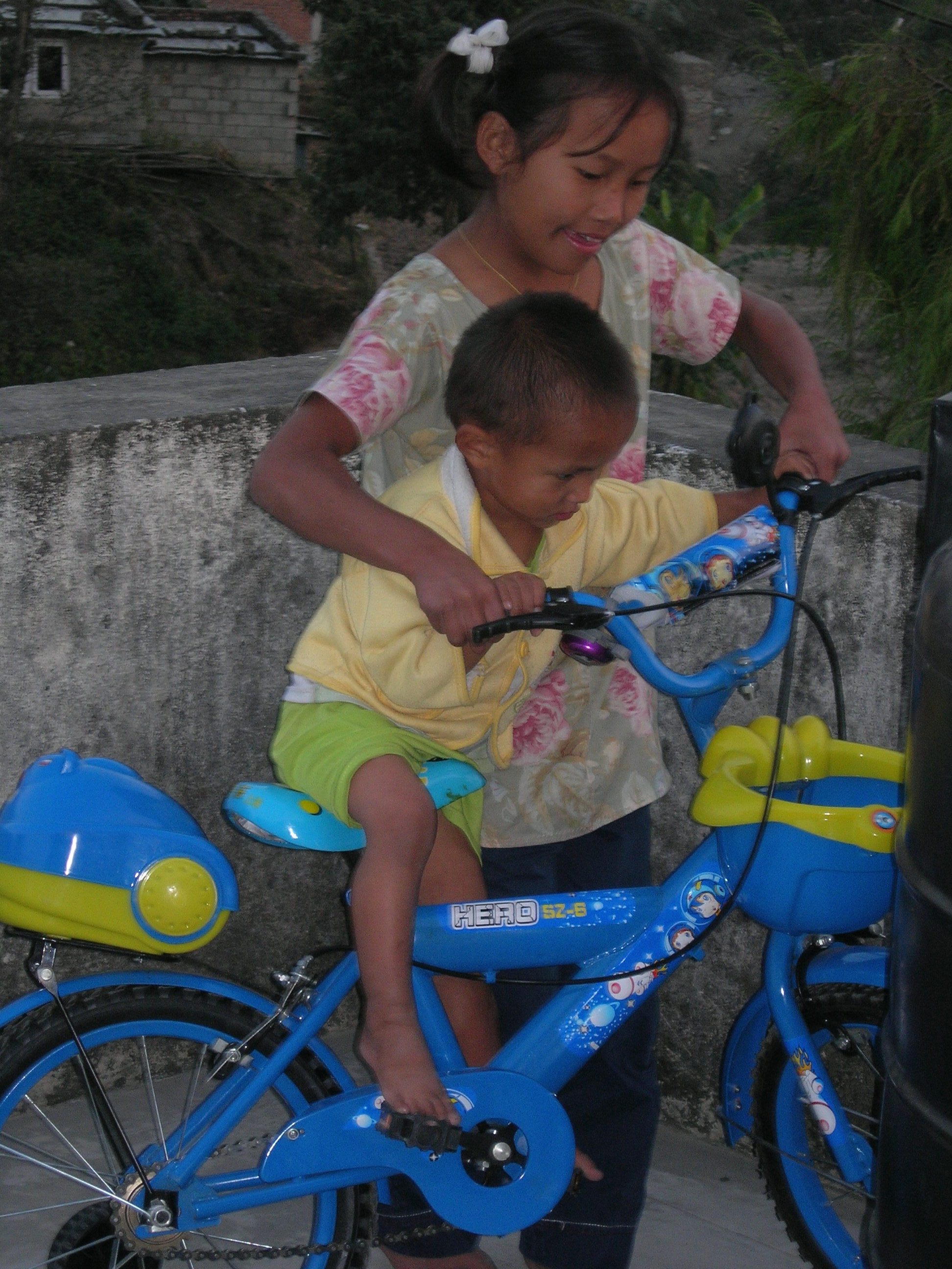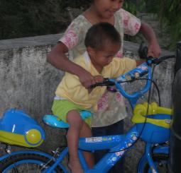 Little Wonchu with Lakpa trying the bicycle