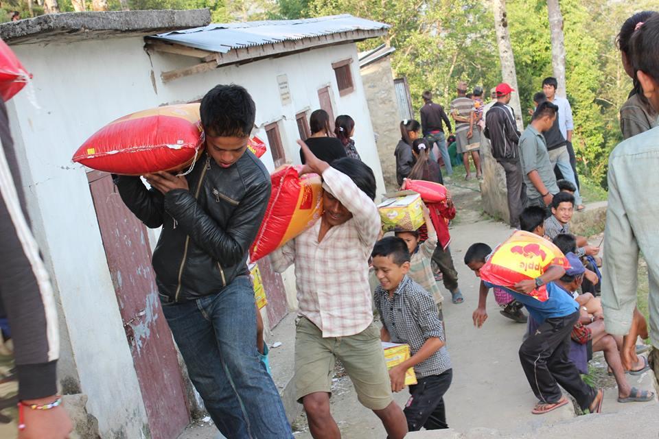 In a village after earthquake - food support from Sonrisa